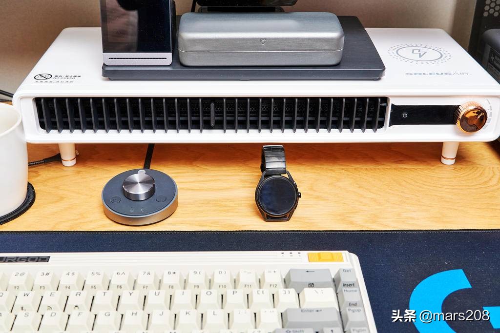 舒乐氏的这款多功能支架非常实用,是给媳妇笔记本电脑选购屏幕增高架时无意间发现的,它是一款带暖风机功能的支架桌子,暖风高、低两档可调,更有负离子风功能,风向180度广角可调,桌面上可以无线充电,架起的底部还可放置键盘等桌面物品,一机多用,解决不少桌面痛点问题,算是淘到的新宝贝,趁媳妇不用时,我就给它“拿”过来用用。