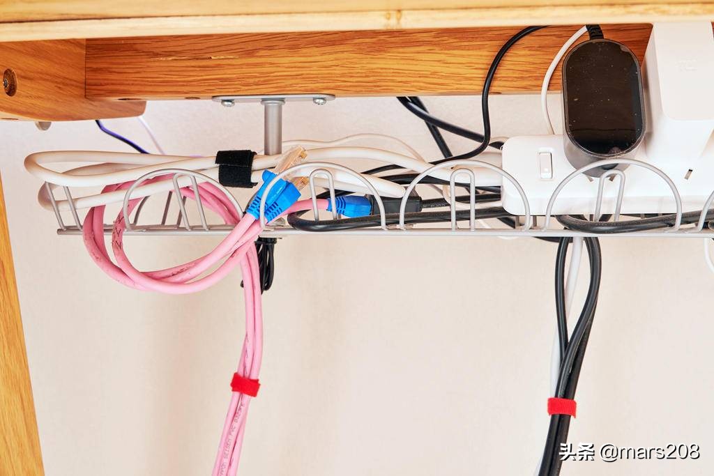 对于电脑桌面来说,随着设备的增多,桌面上的线材会越来越多,让本就面积有限的桌面变的凌乱不堪,有效的办法有很多,楼主这里采取了将插线板隐藏到桌板下面,并用魔术扎带对线材加以分类捆扎起来,这样就会清爽很多。